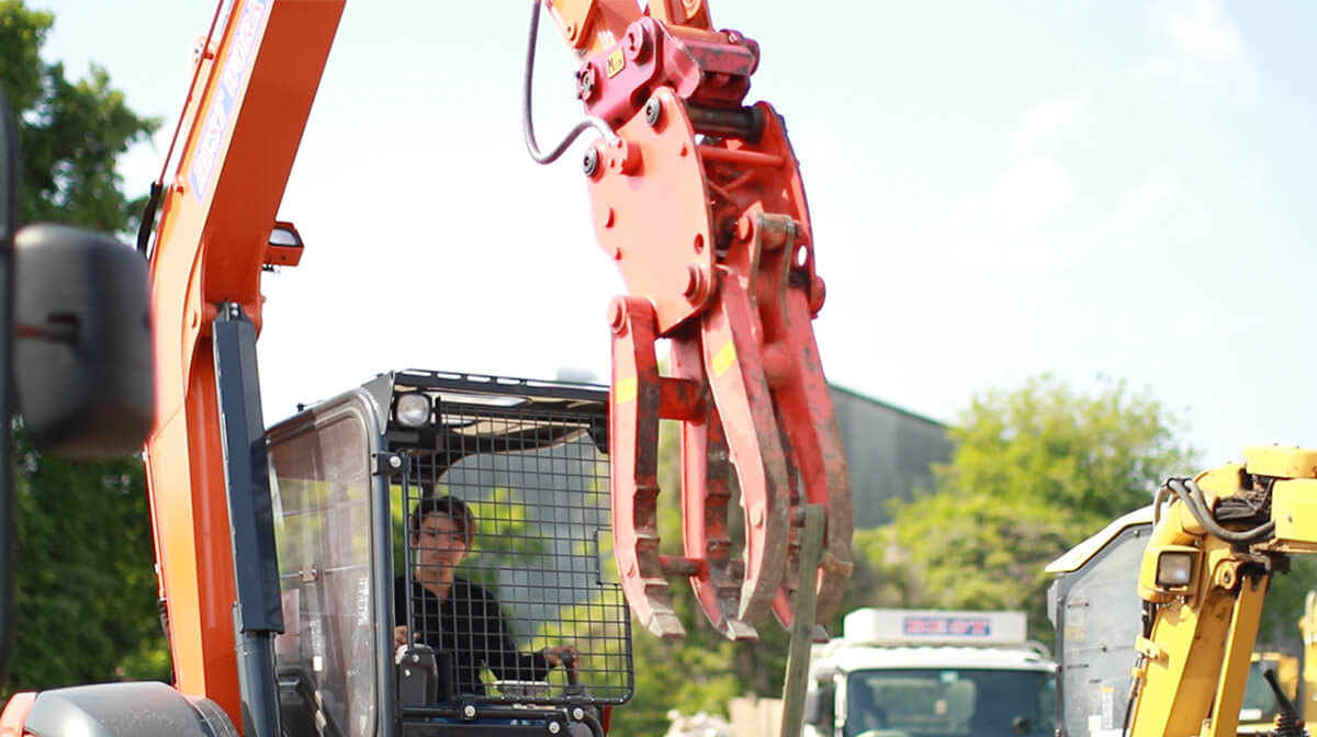 自社でこれほど多くの車両・機材を保有しているのは、完全自社完結のスピード解体にこだわっているからです 。HITACHI ZX350-LCKをはじめとする大型重機から、住宅地で活躍する小型重機まで、多彩なマシンを操るチャンスがあります 。